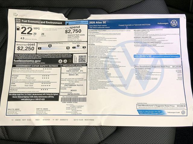 2026 Volkswagen Atlas 2.0T SE
