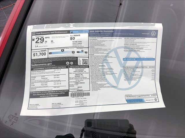 Red 2026 Volkswagen Jetta GLI 2.0T Autobahn 25/35 City/Highway MPG FWD 7-Speed DSG Automatic with Tiptronic 2.0L TSI DOHC 25/35 City/Highway MPG
