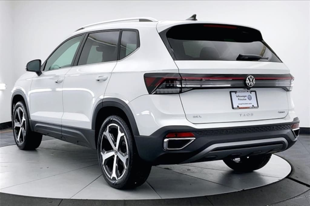 White 2026 Volkswagen Taos 1.5T SEL 25/33 City/Highway MPG AWD 8-Speed Automatic with Tiptronic 1.5L I4 Turbocharged DOHC 16V LEV3-SULEV30 174hp 25/33 City/Highway MPG