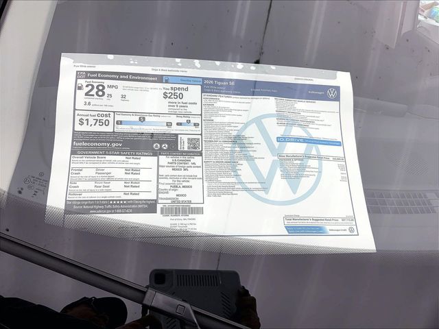 White 2026 Volkswagen Tiguan 2.0T SE 25/32 City/Highway MPG FWD 8-Speed Automatic 2.0L TSI DOHC 25/32 City/Highway MPG