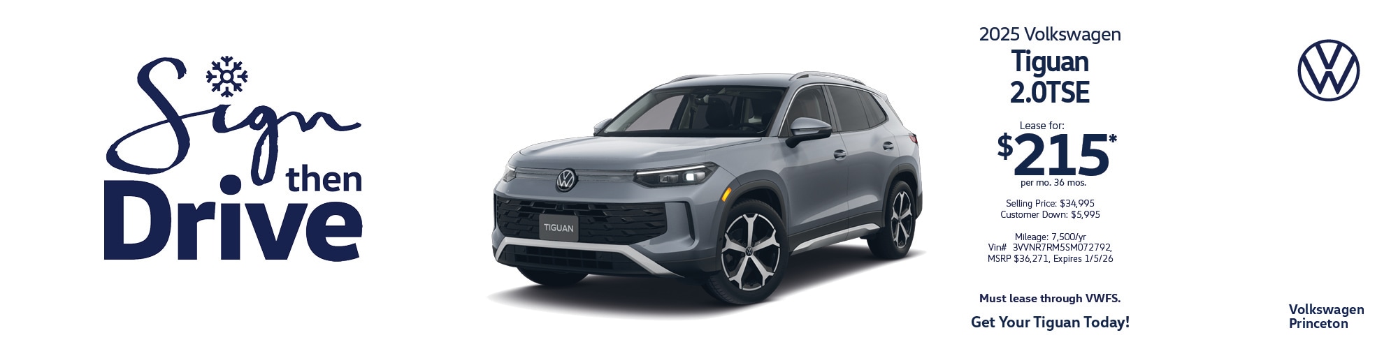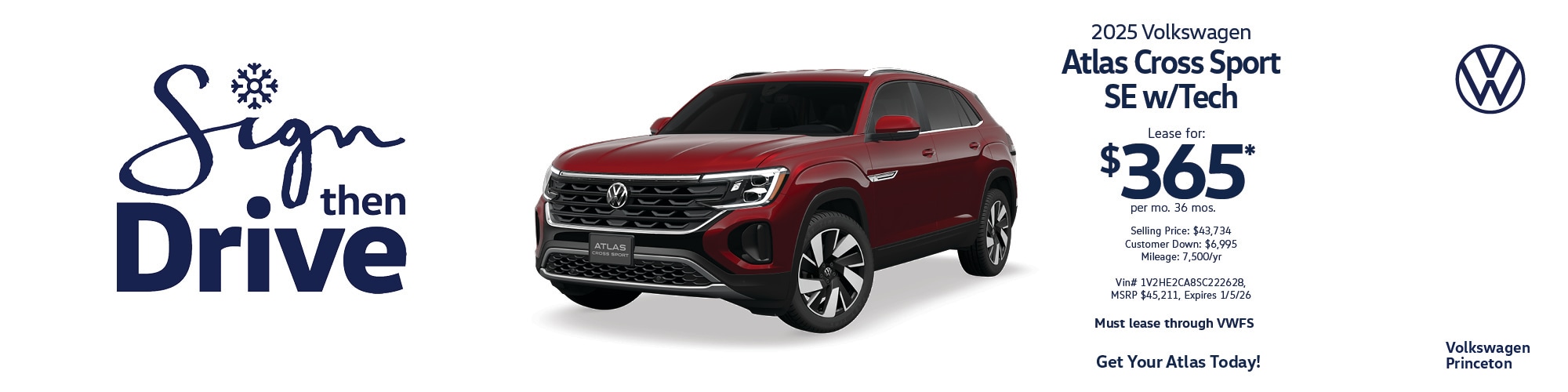 *All prices exclude tax, title, licensing, destination, dealer fees, bank fee, 1st month, & MV fees. Excludes $899 documentation fee. MSRP: $36,271. $5,995 due at signing plus tax, tags, MV fees & dealer fees. $0 sec dep. Ttl pymt/Residual: $7,740/$23,938.86. Must finance through Volkswagen Credit to qualify. Must finance vehicle at standard rate. See dealer for complete details. Offers expire 11/30/25
