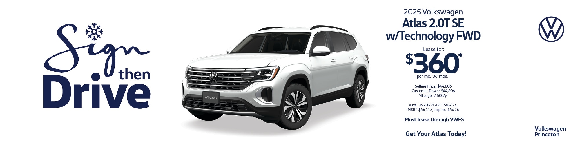 *All prices exclude tax, title, licensing, destination, dealer fees, bank fee, 1st month, & MV fees. Excludes $899 documentation fee. MSRP: $45.211. $6,995 due at signing plus tax, tags, MV fees & dealer fees. $0 sec dep. Ttl pymt/Residual: $13,140/$27,126 Must finance through Volkswagen Credit to qualify. Must finance vehicle at standard rate. See dealer for complete details. Offers expire 11/30/25.